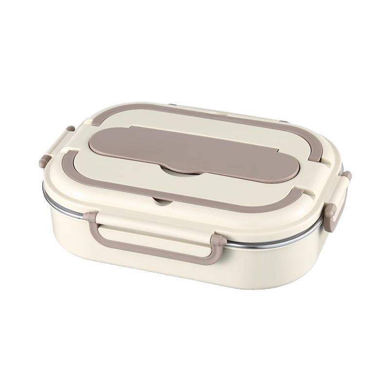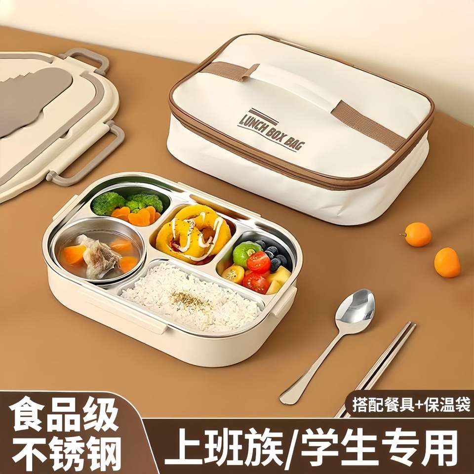 Lonchera de Acero Inoxidable con Compartimentos, Apta para Microondas, para Niños y Trabajadores de Oficina, Tapa Rectangular de PP