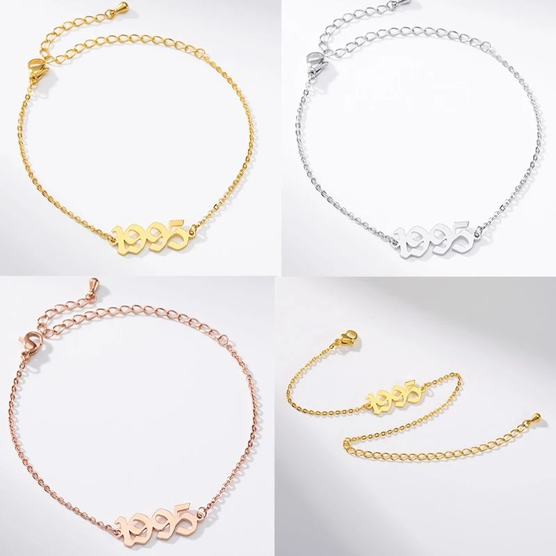Tobilleras de Acero Inoxidable con Año de Nacimiento para Mujer, Número del Año en Inglés Antiguo 1995, Pulsera de Tobillo Dorada, Cadena para el Pie, Joyería de Halloween, Regalo