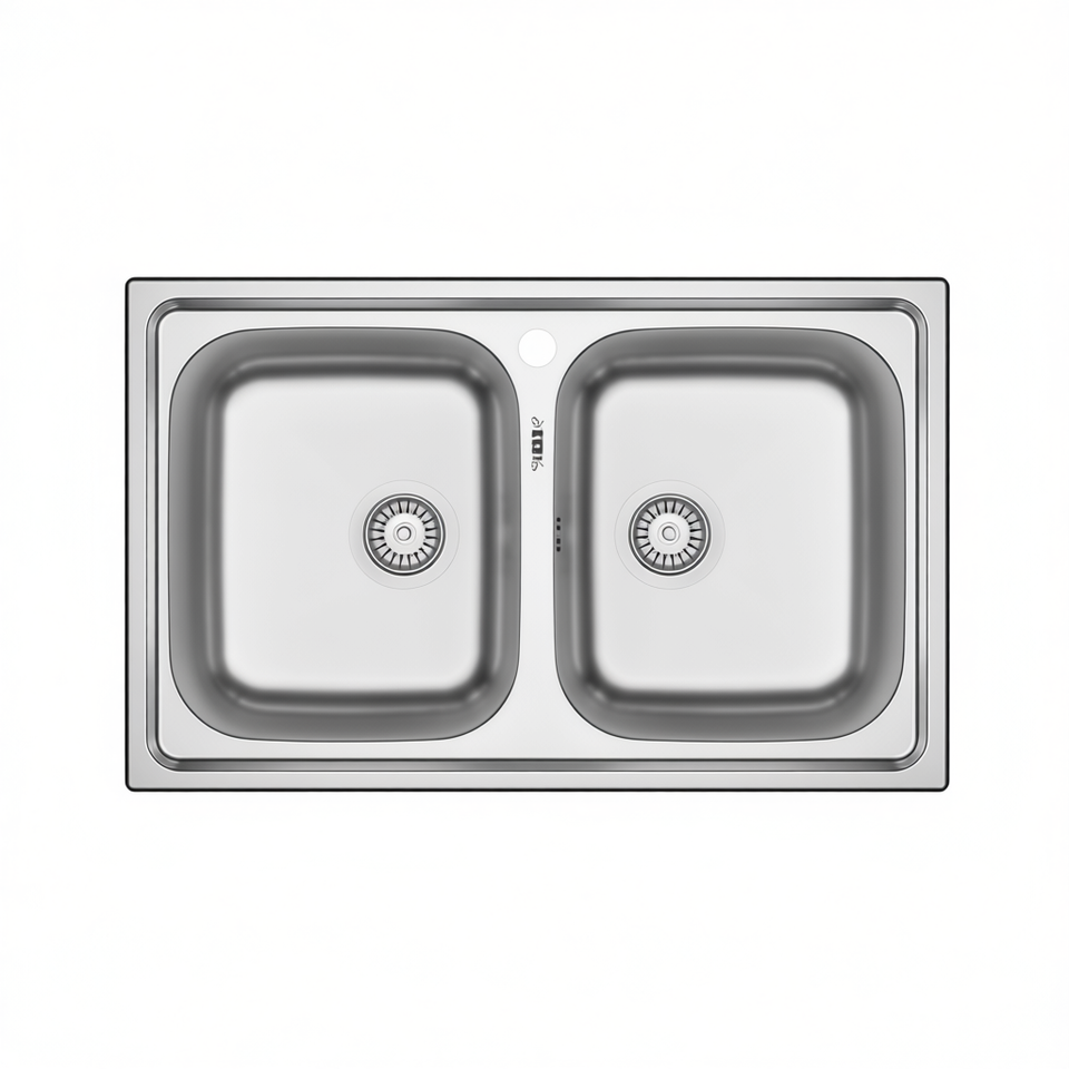 Fregadero Empotrado de Acero Inoxidable de 80x50 cm con Doble Cubeta para Cocina
