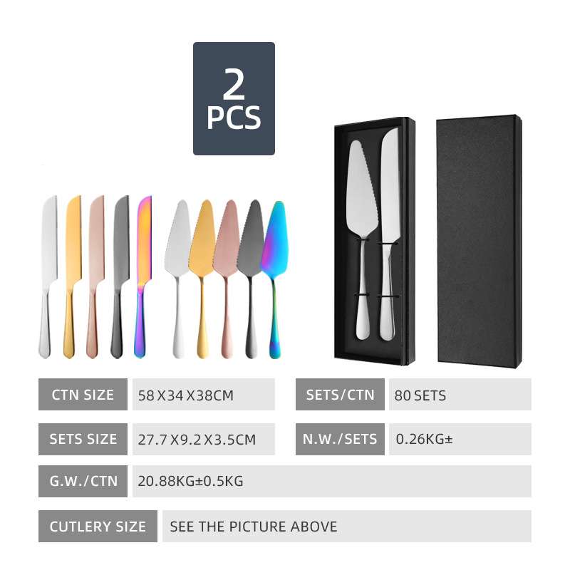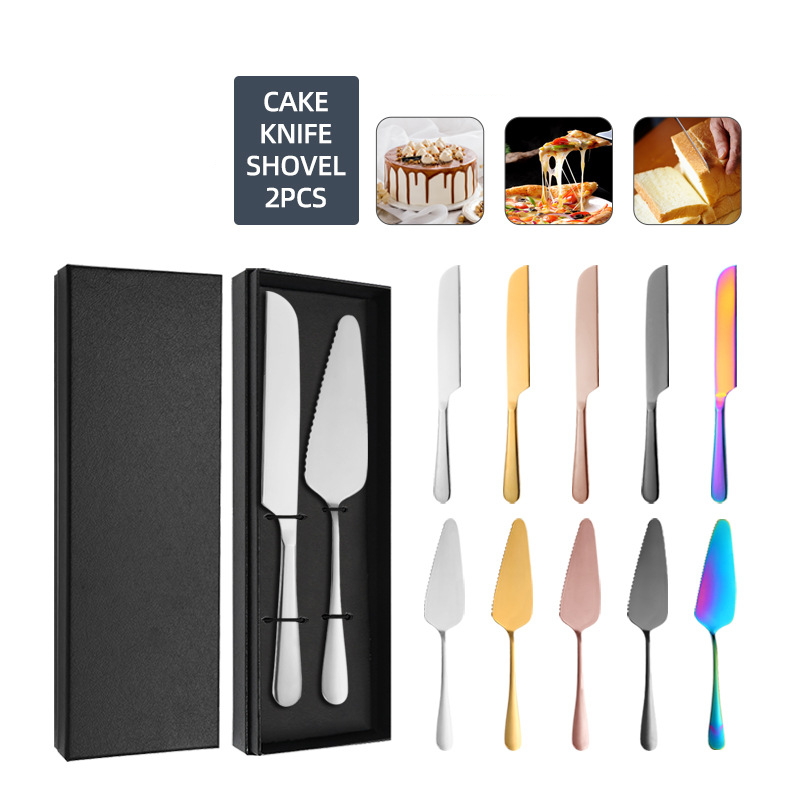 Cuchillo de mantequilla de acero inoxidable, pala para pizza, cubiertos, cubiertos, juego de espátula, cuchillo para pastel y juego de servidor