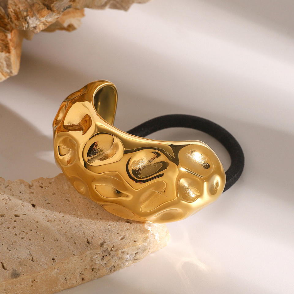 Diadema en Forma de C de Acero Inoxidable con Textura Martillada, Banda Elástica Negra, Accesorio para el Cabello de Uso Diario