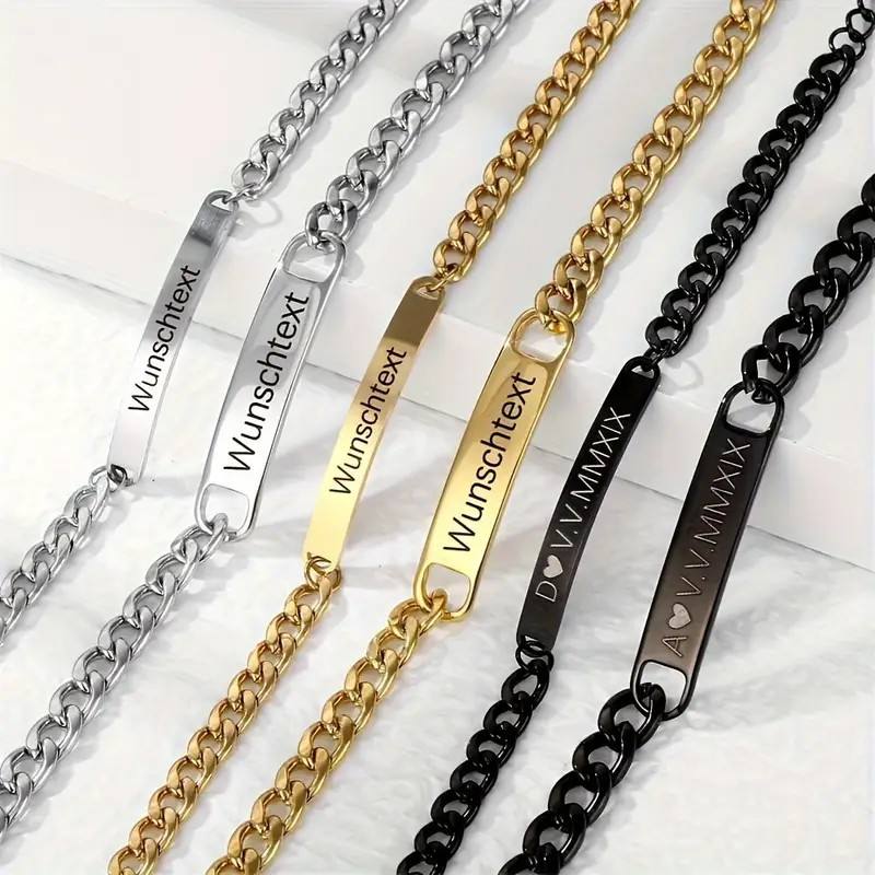Pulsera de Acero Inoxidable con Eslabones y Letras Personalizadas, Color Blanco Pino y Negro Esmerilado, para Parejas Unisex