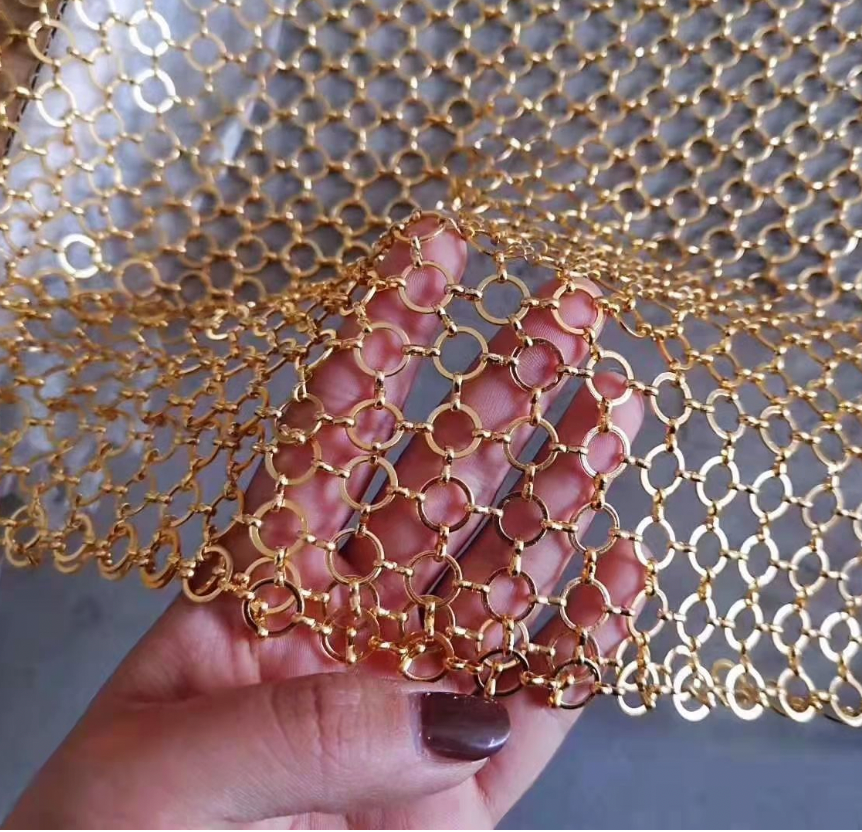 Estructura de Malla:Diseño de anillos y eslabones entrelazados, patrón de tejido abierto, alta translucidez