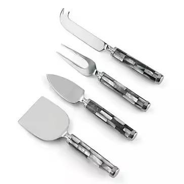 Juego de cuchillos para queso de acero inoxidable con mango de madreperla para servir rebanar y entretener con un elegante diseño moderno