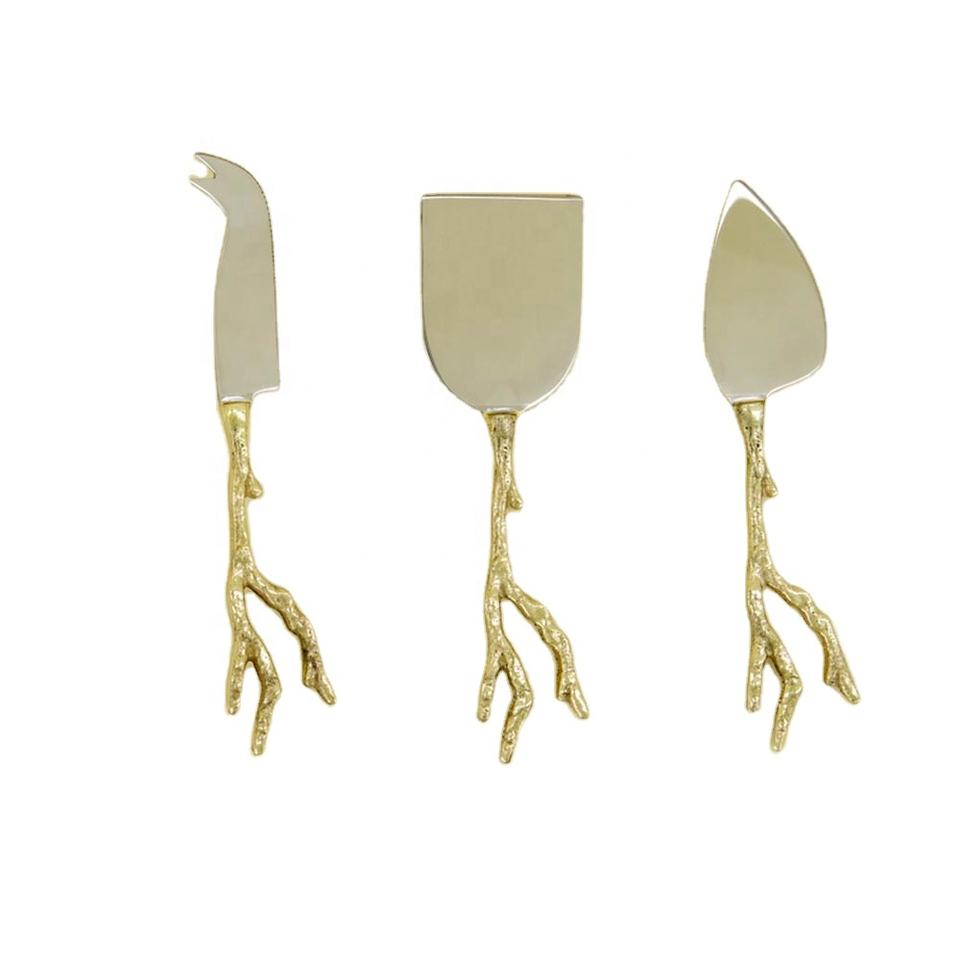Juego de cuchillos de acero inoxidable para queso, diseño de vástago dorado de latón, utensilios de cocina con mango