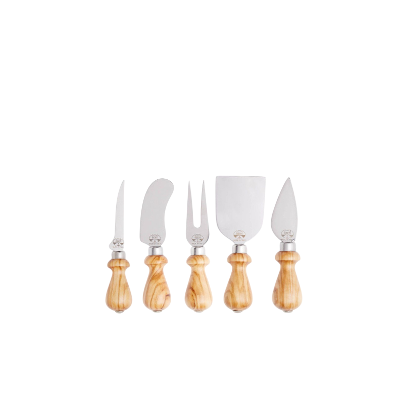 Juego de Cuchillos para Queso de Acero Inoxidable con Mango de Madera de Acacia, Cortador, Servidor y Tenedor para Queso, Herramientas Perfectas para Tablas de Charcutería