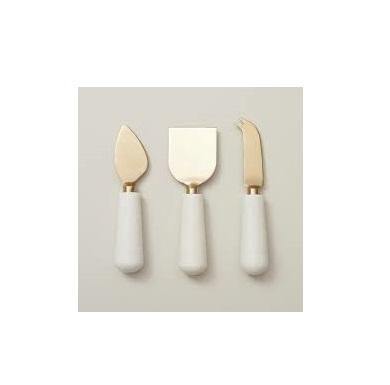 Juego de queso de acero inoxidable con mango de ratán, servidor de ensalada, cubiertos, cuchara, queso esparcidor de chapado en oro, juego de queso