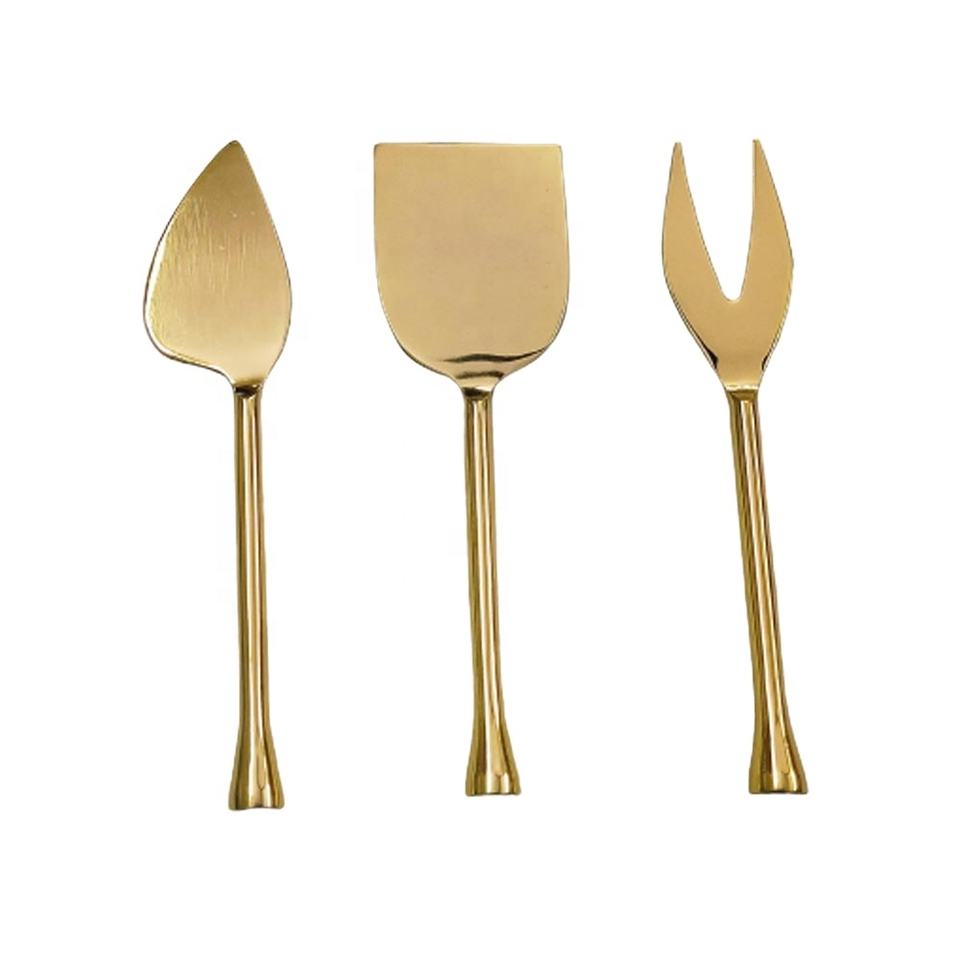 Juego de queso de acero inoxidable con mango redondo dorado, herramientas para queso hechas a mano