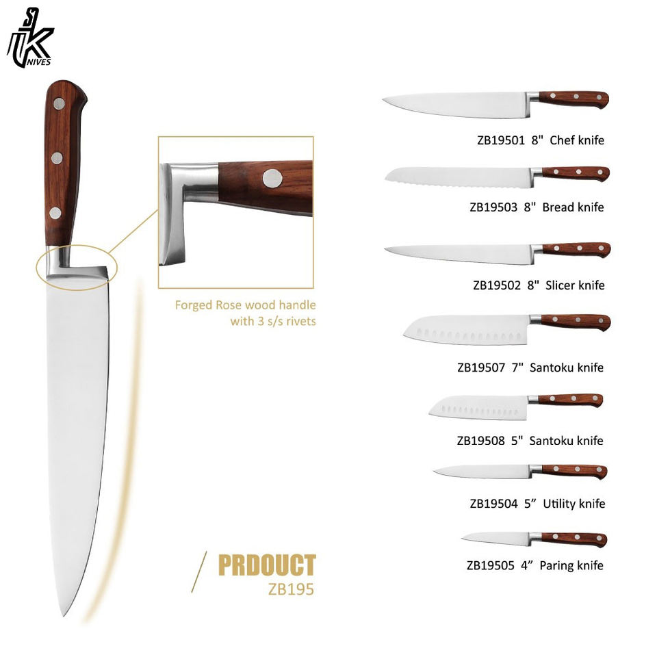 Juego de cuchillos de Chef de acero inoxidable, utensilios de cocina, 8 pulgadas, OEM