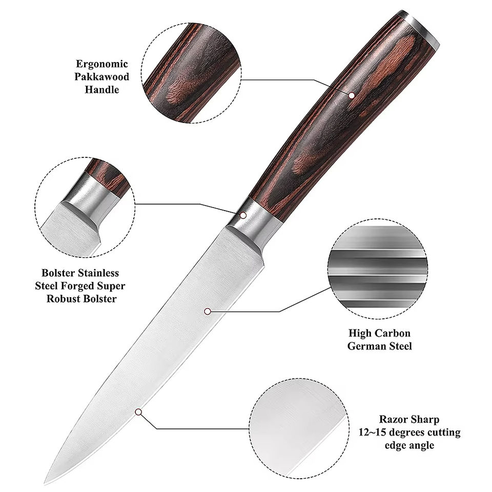 Cuchillo de chef de acero inoxidable con tarjeta Parker negra Mango de madera Cuchillo de cocina de acero al carbono