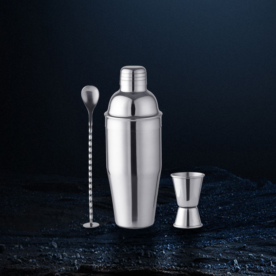 Juego de Coctelera de Acero Inoxidable de 3 Piezas con Capacidad de 700 ml, Diseño Moderno y Sostenible para Uso en Bares y Discotecas