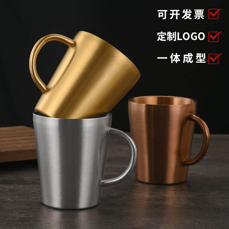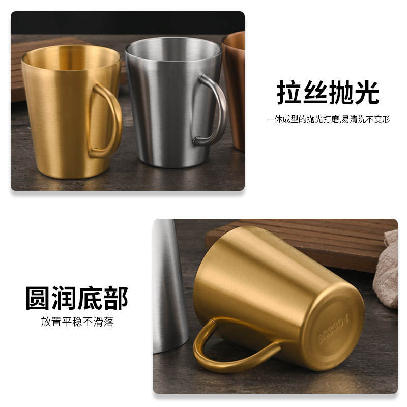 Taza de Café de Acero Inoxidable con Asa, Doble Capa Anti-Escaldaduras, Taza para Té, Jugo, Leche, Regalo, Taza Recta de Metal 304