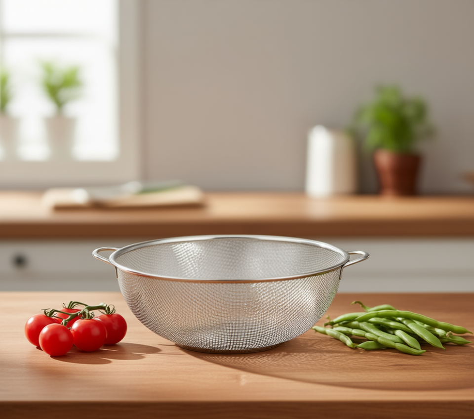 Colador de Acero Inoxidable de 34x10.5 cm, Colador de Cocina de Malla Fina, Apto para Lavavajillas