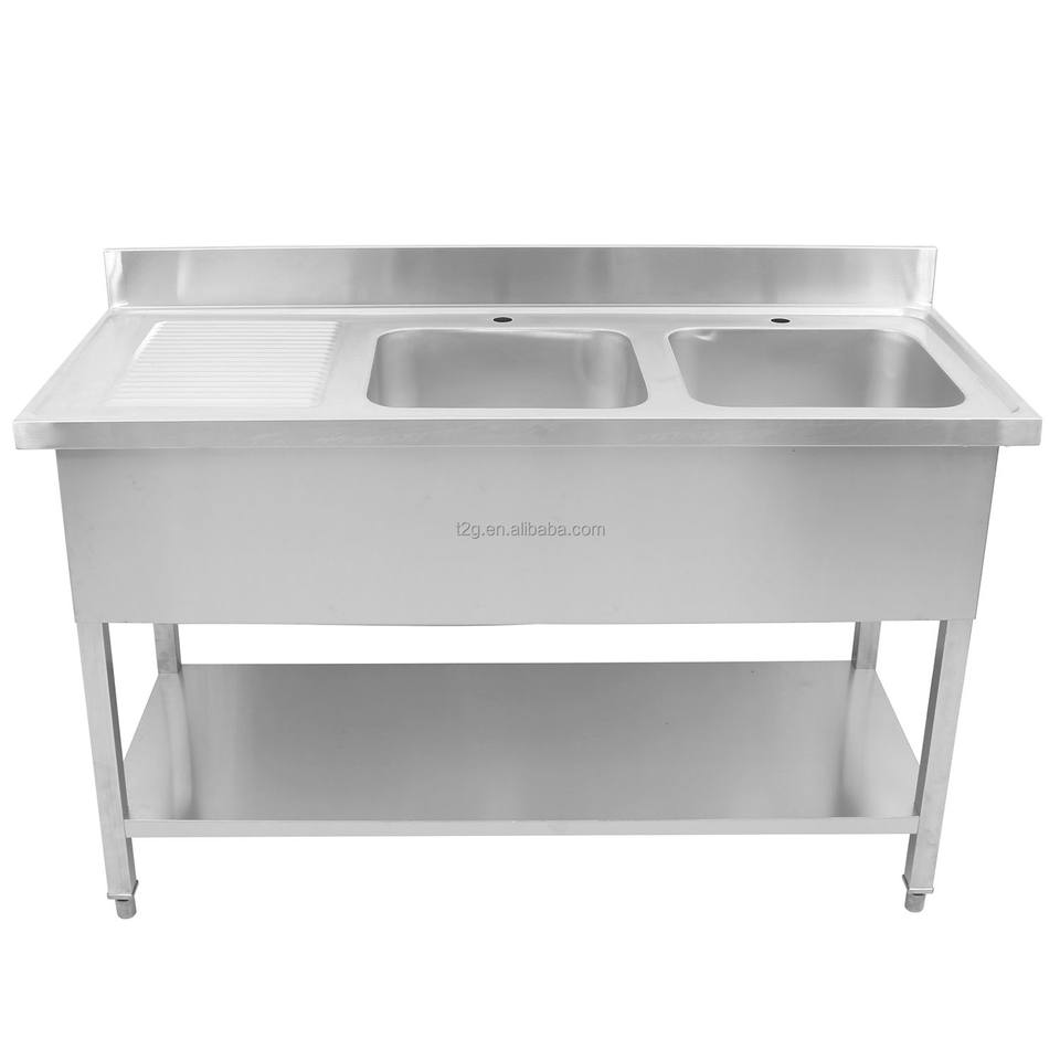 Mesa de Trabajo de Acero Inoxidable para Cocina Comercial con Fregadero, Repisa Trasera y Gran Capacidad de Carga