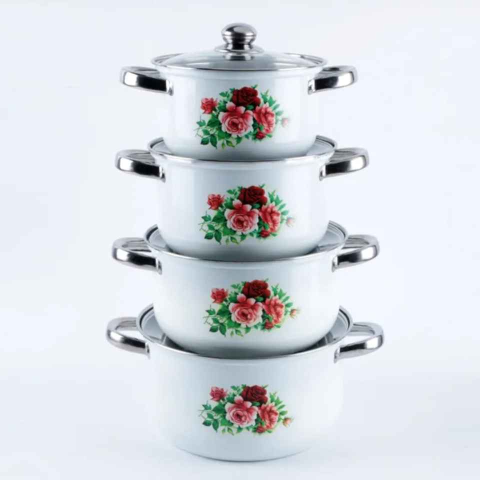 Juego de ollas de acero inoxidable con tapa, utensilios de cocina florales, aptos para lavavajillas y horno, con mangos de madera, ollas para sopa, caldo y cacerolas