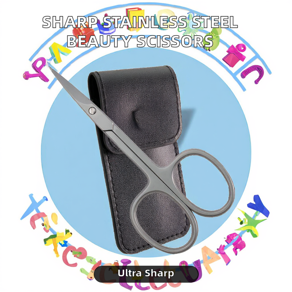 Tijeras de belleza curvas de acero inoxidable quirúrgico Ametrine para diestros, para el cuidado de cejas, cutículas y arte de uñas