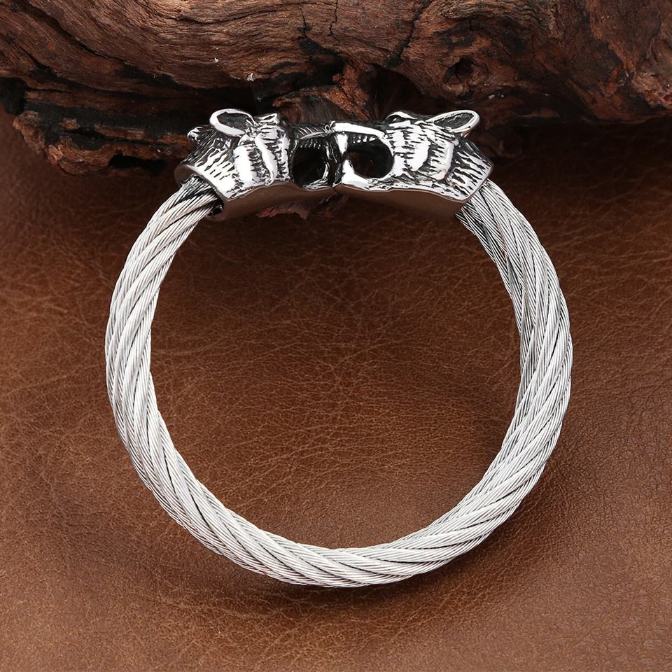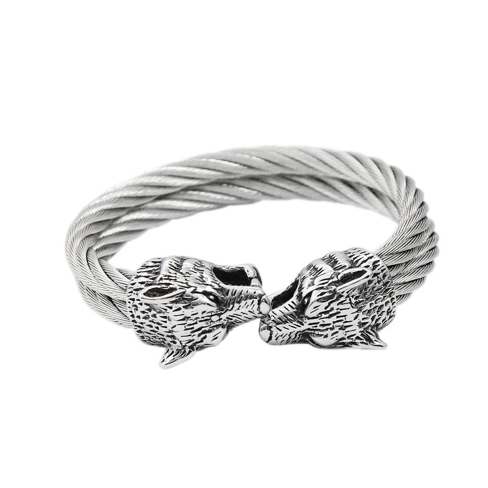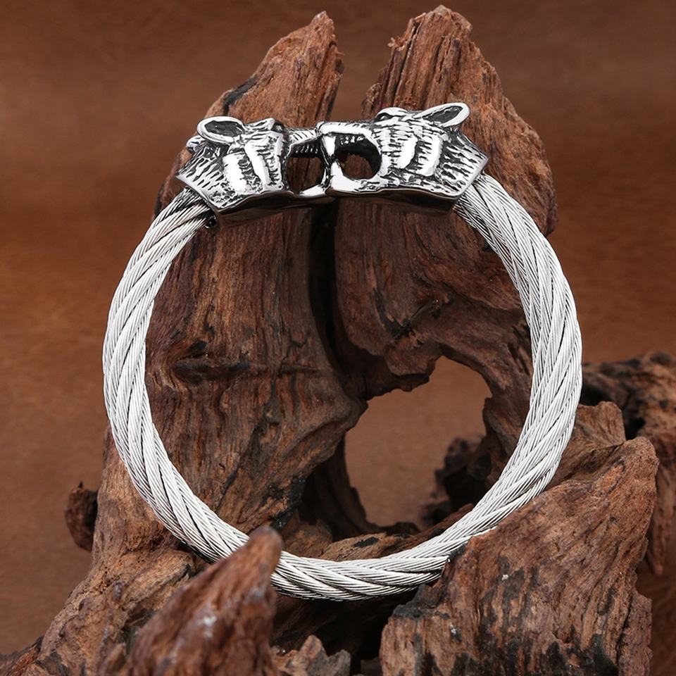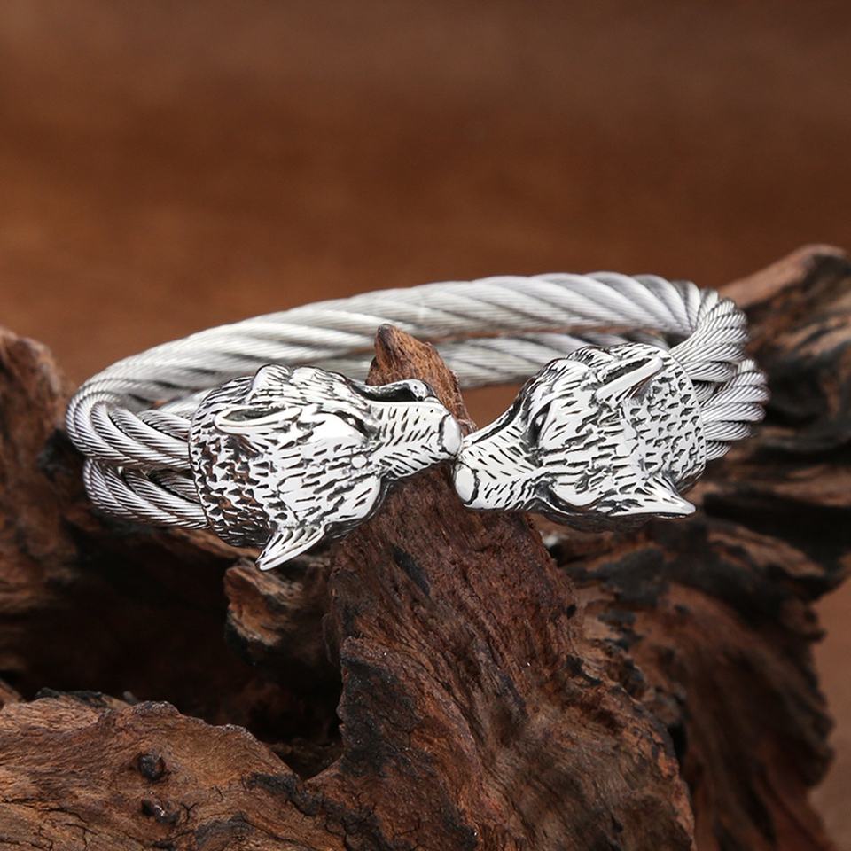 Pulsera Vikinga de Acero Inoxidable con Cabeza de Lobo Trenzada Personalizada para Hombre, Joyería Gótica Vintage de Alta Calidad, Duradera y de Lujo