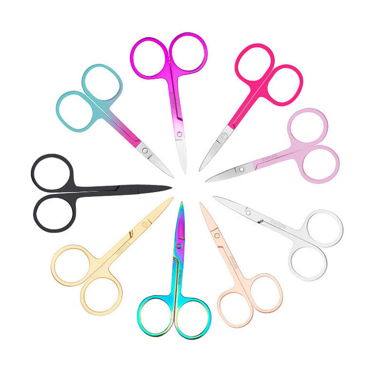 Tijeras para pestañas personalizadas de acero inoxidable, hoja recta afilada, herramientas pequeñas para uñas, maquillaje de belleza, ceja, nariz, corte de pelo, mango de plástico