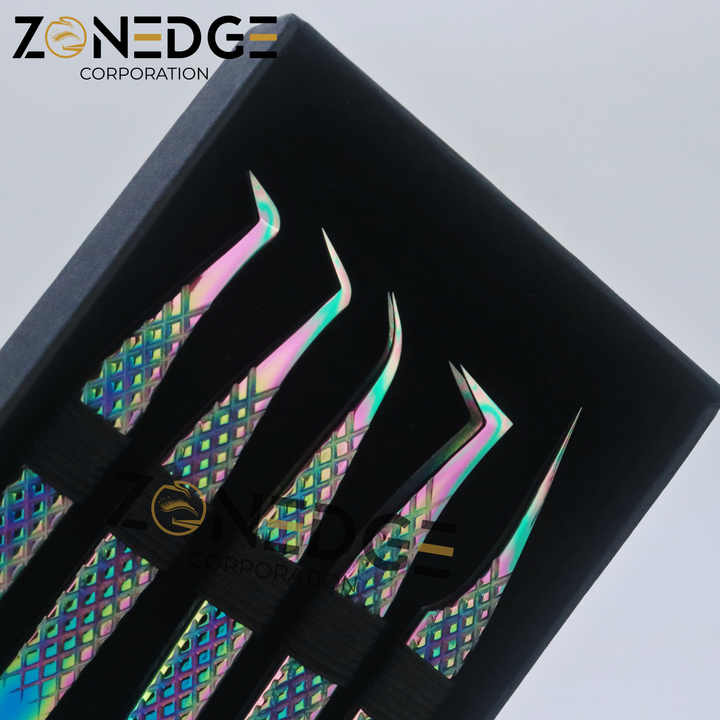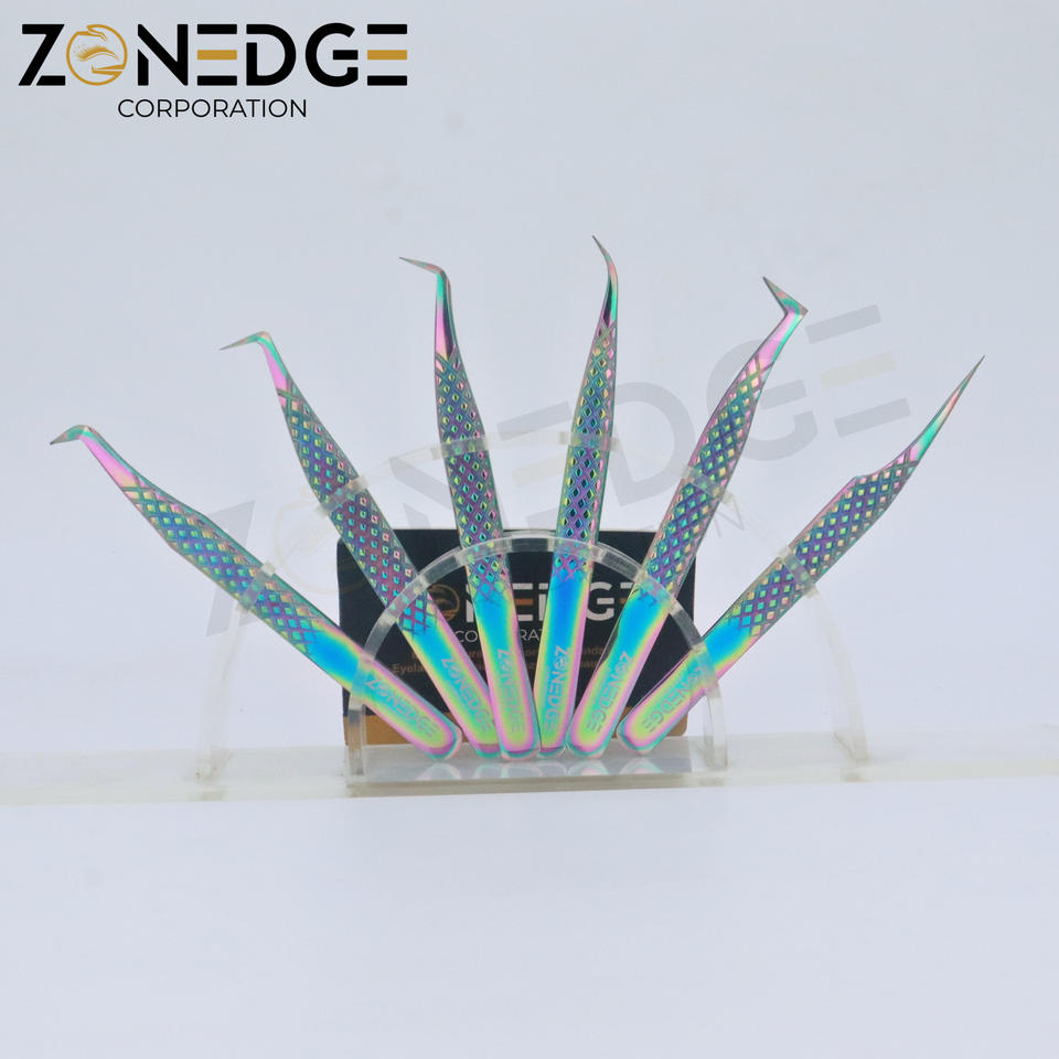 Pinzas de pestañas de titanio multicolor personalizadas de acero inoxidable, herramienta de belleza sostenible de etiqueta privada, extensión de pestañas OEM puntiaguda