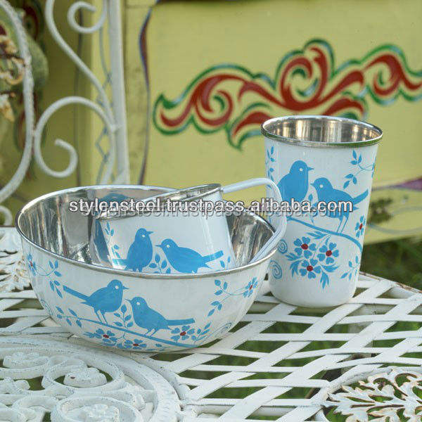 Juego de cena floral de acero inoxidable impreso personalizado, vajilla Occidental para el hogar y el camping, accesorios de mesa de metal azul
