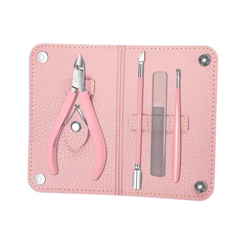 Pink dead skin scissors 4-piece set - leather case