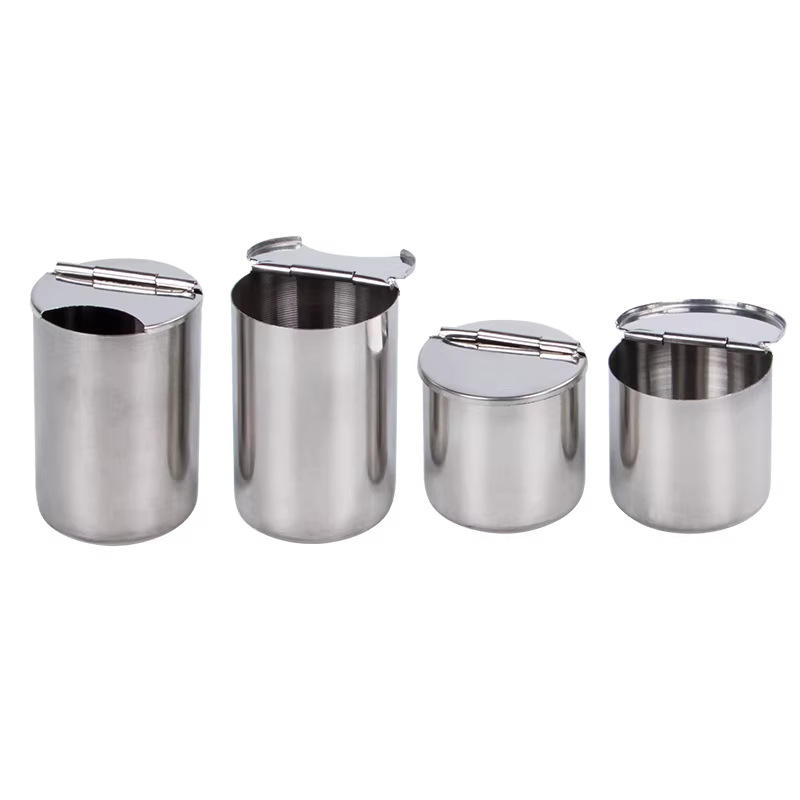 Juego de Recipientes Cilíndricos de Acero Inoxidable con Tapa Abatible, Recipiente para Almacenamiento de Alimentos, Color Sólido, Bandeja de Tratamiento de Alta Calidad, Uso General