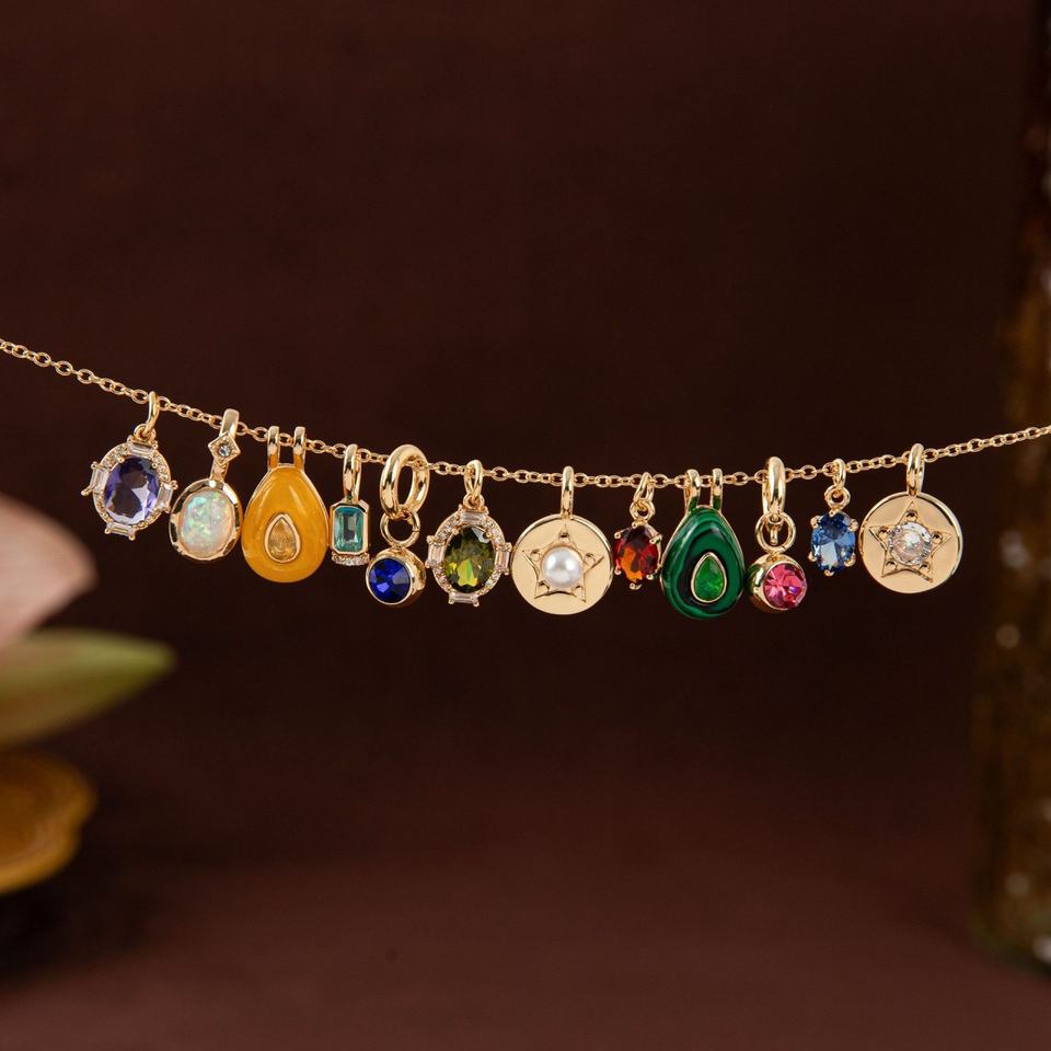 Collar con colgante de 12 piedras de nacimiento de acero inoxidable, cadena suelta básica DIY, moderno, con protección de color oro de 18K, fabricado al vacío en horno.