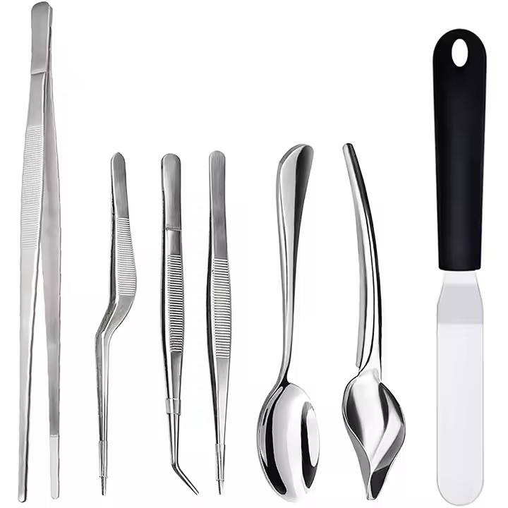 Juego de Utensilios Culinarios de Acero Inoxidable, Cuchara Decorativa, Kit de Emplatado Profesional para Presentación de Alimentos, Cocina y Uso en la Cocina