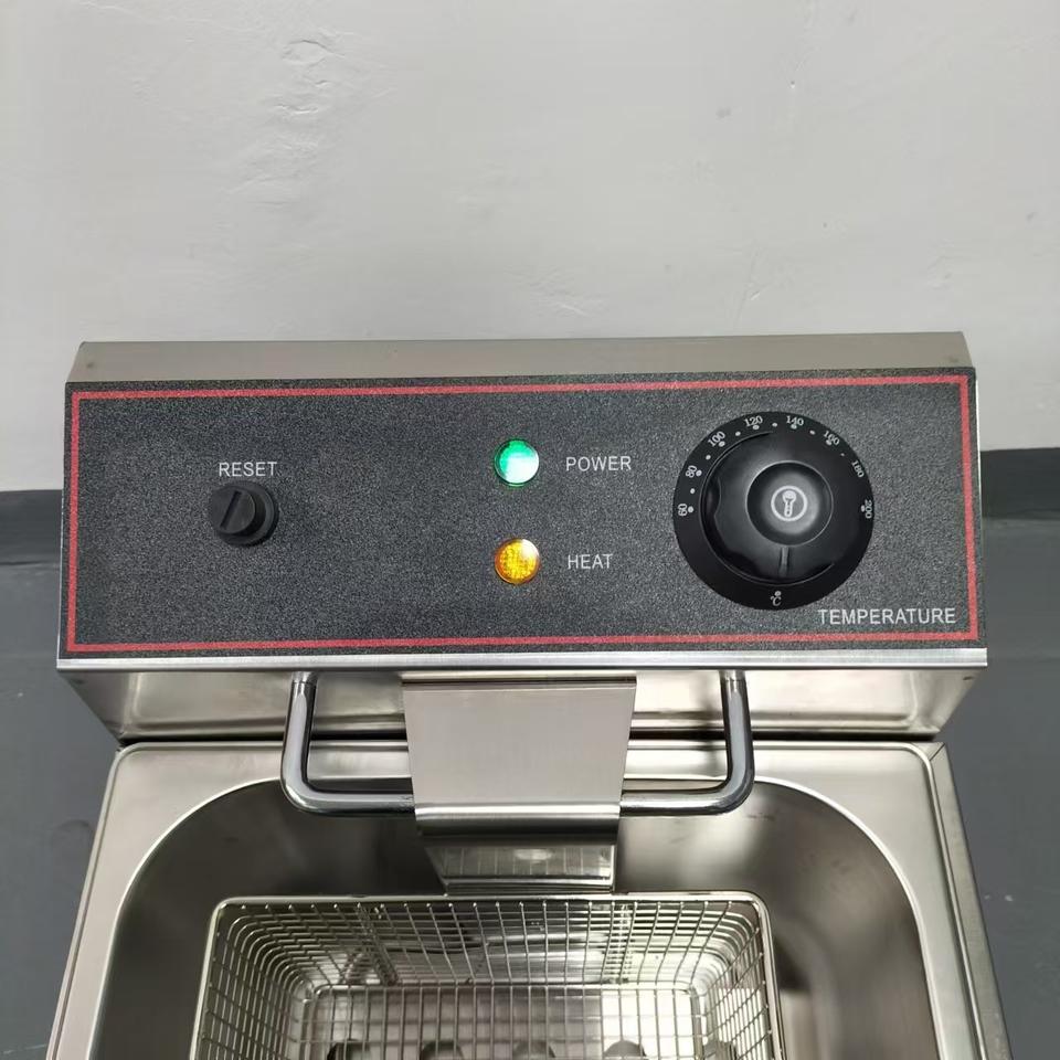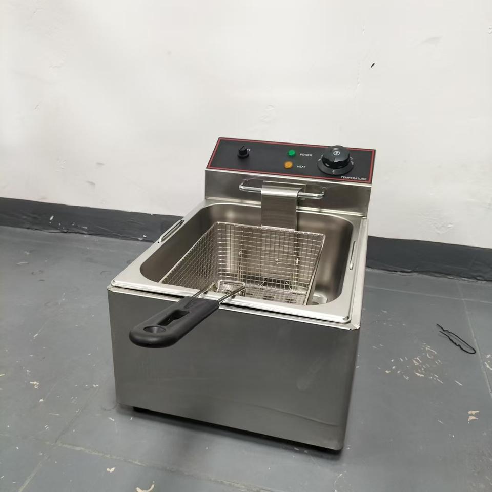 Freidora eléctrica de acero inoxidable de 6L, de sobremesa, de un solo cilindro, para preparación de alimentos en restaurantes.