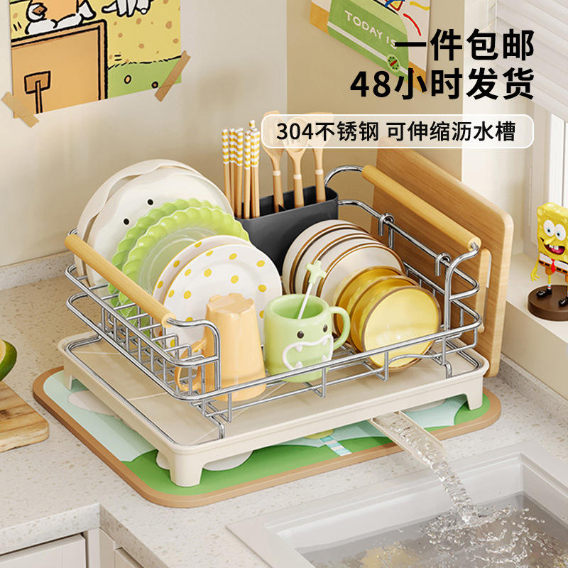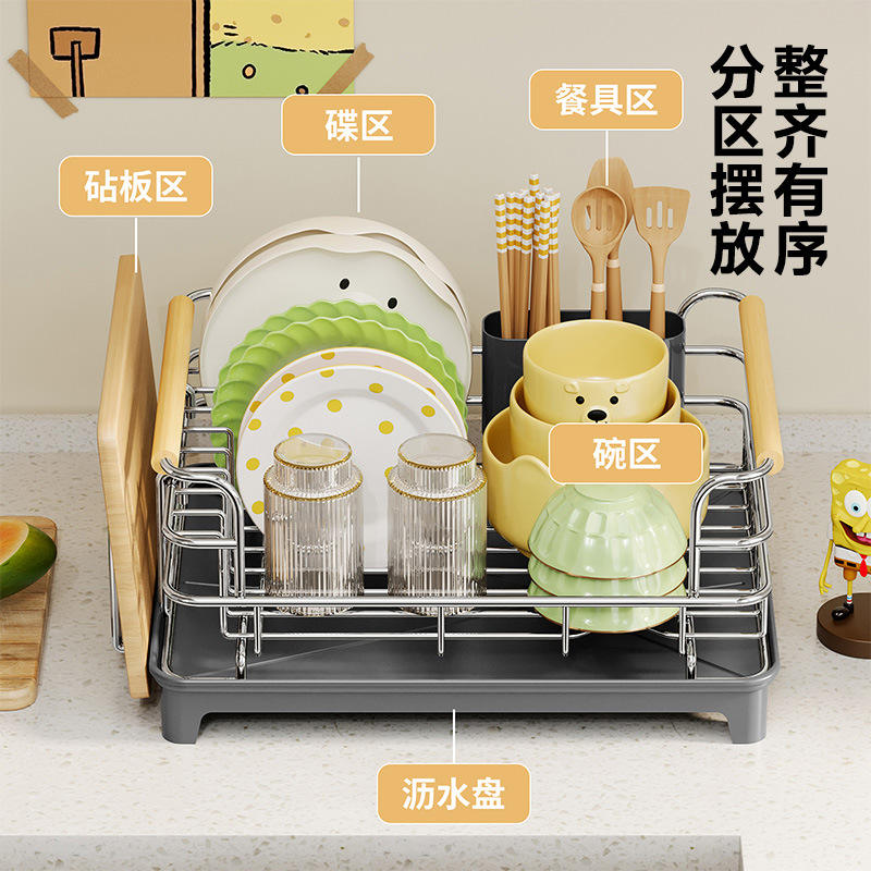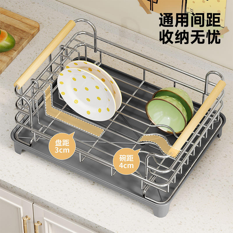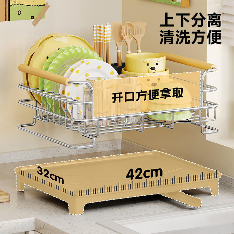 Escurridor de Platos de Acero Inoxidable con Drenaje, Organizador Multifuncional de Cocina para Vajilla, Cuencos y Palillos, Tamaño L