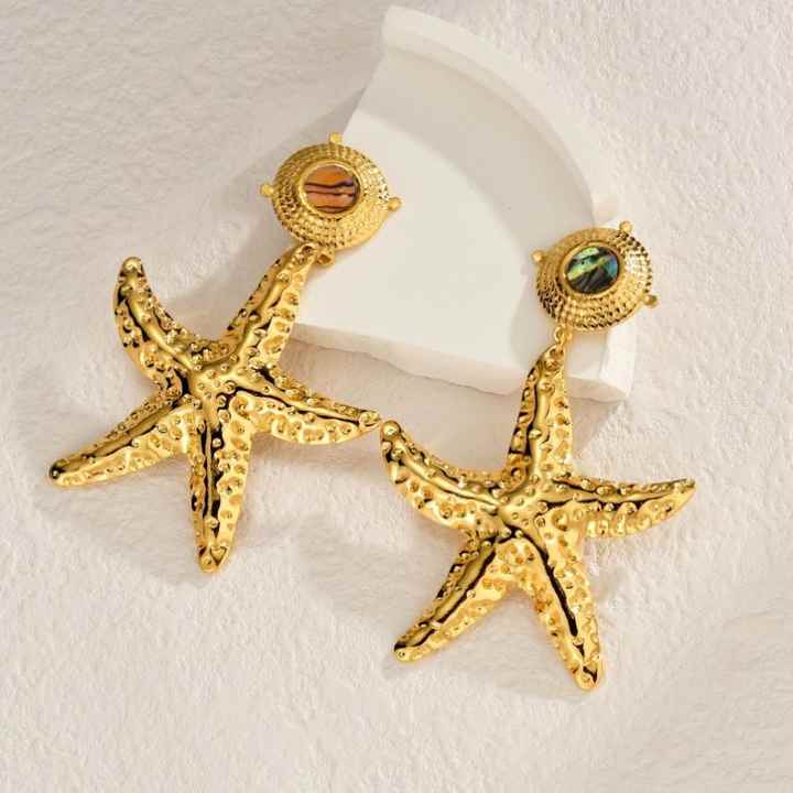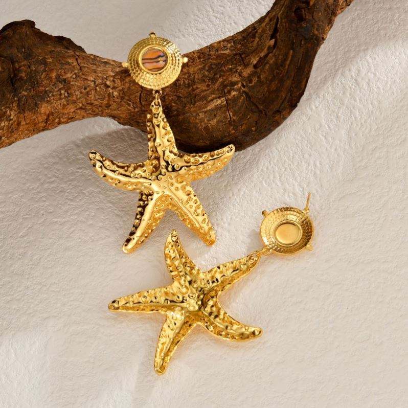 Nombre del producto:Acero inoxidable distintivo doble gota Starfish Pendientes