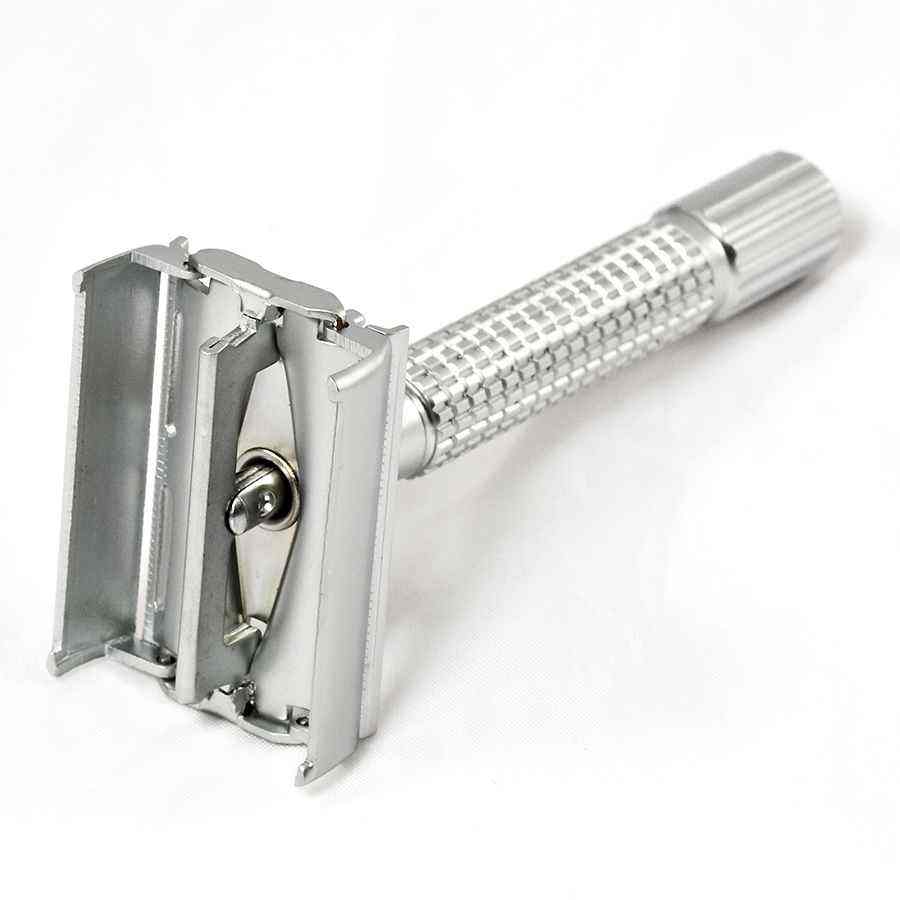 Navaja de Afeitar de Doble Filo de Acero Inoxidable, Acero Quirúrgico de Alta Calidad con Mango Largo, Navaja Tipo Mariposa con Logotipo Personalizado