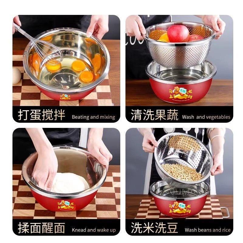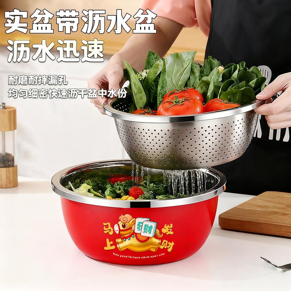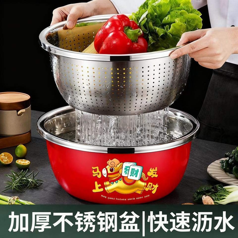 Escurridor redondo de acero inoxidable de doble capa con cesta de drenaje, de calidad alimentaria y engrosado, para lavar y escurrir verduras