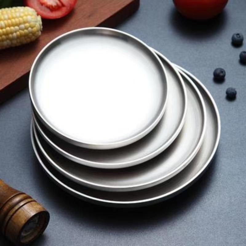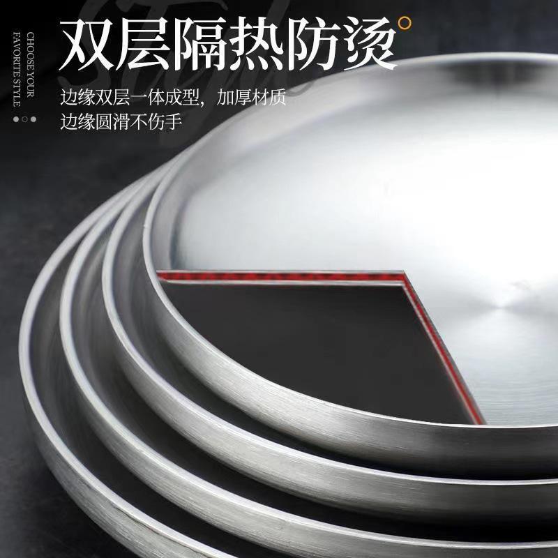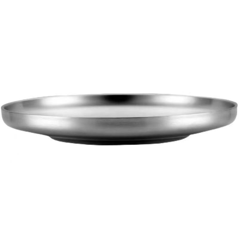 Plato Redondo de Acero Inoxidable de Doble Capa con Aislamiento Térmico para Asar Carne y Servir Sashimi en Fiestas
