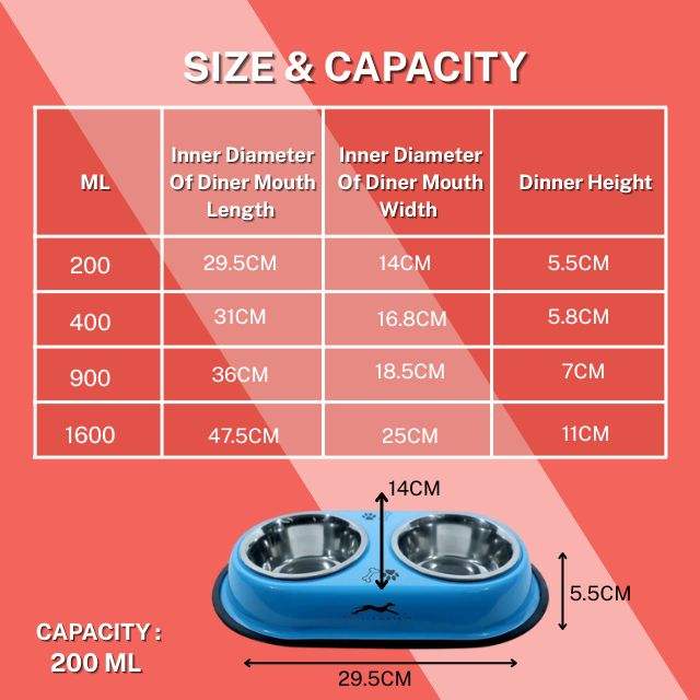 Description:Pets Empire Dog & Cat Bowl Feeder Double Diner Stainless Steel