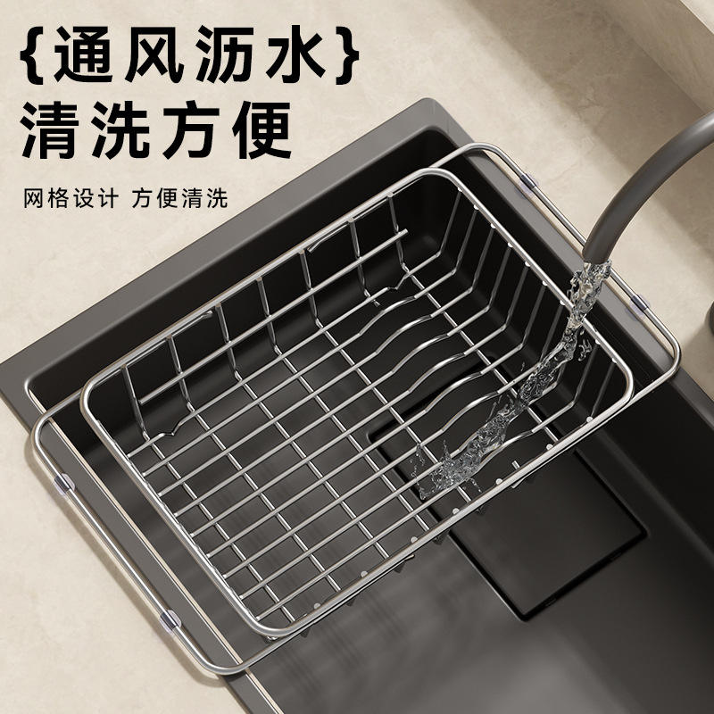 Escurridor de acero inoxidable ajustable para fregadero, cesta cuadrada para almacenamiento de vajilla de cocina, tamaño L
