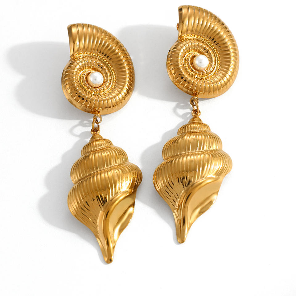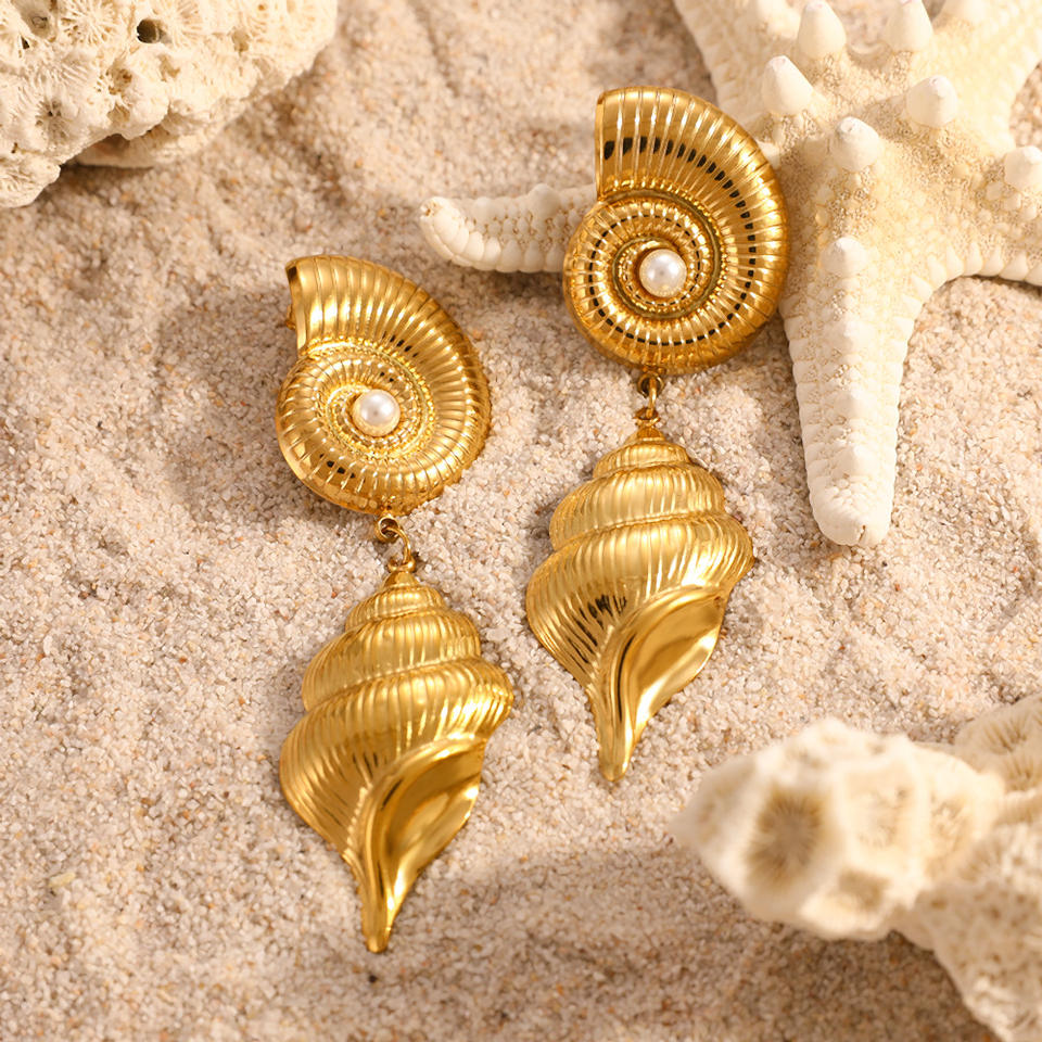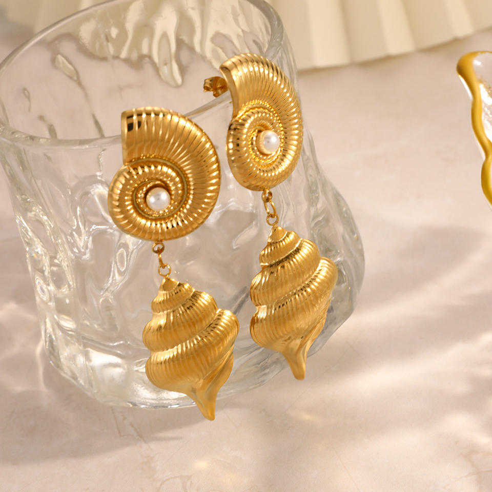 Pendientes de Acero Inoxidable con Diseño de Concha, Chapados en Oro de 18k, Resistentes al Agua, Joyería de Moda