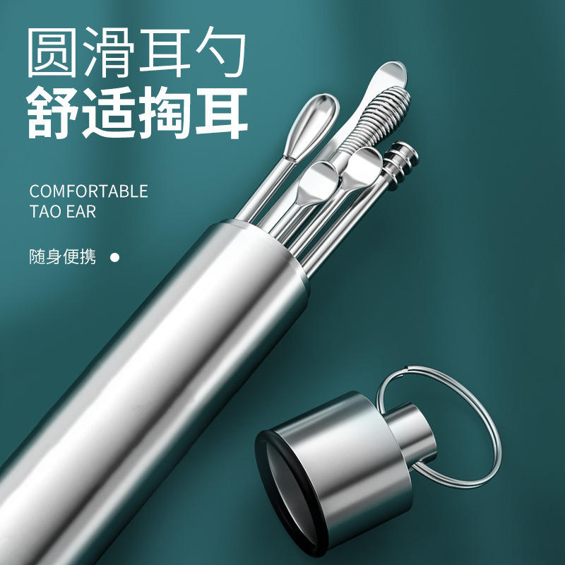 Stainless Steel Ear Pick Set 6 Piece Portable Ear Cleaning Tools With Spiral Spring For General Population
