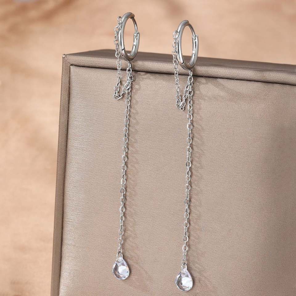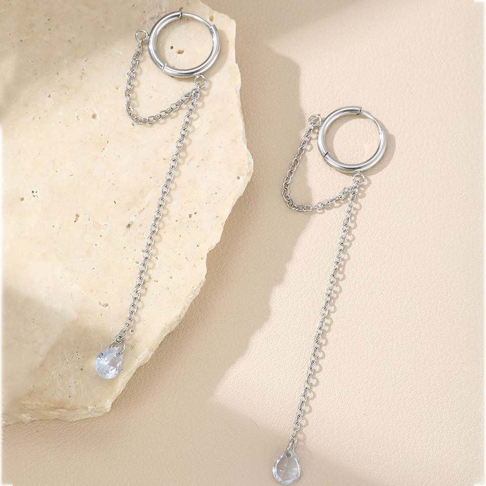 Pendientes de acero inoxidable, Círculo de personalidad, pendientes largos, pendientes de temperamento, diamante cuadrado, cadena de diamantes completos, hebillas para las orejas