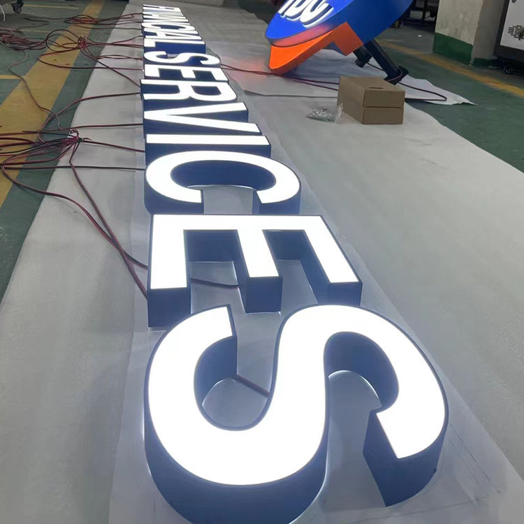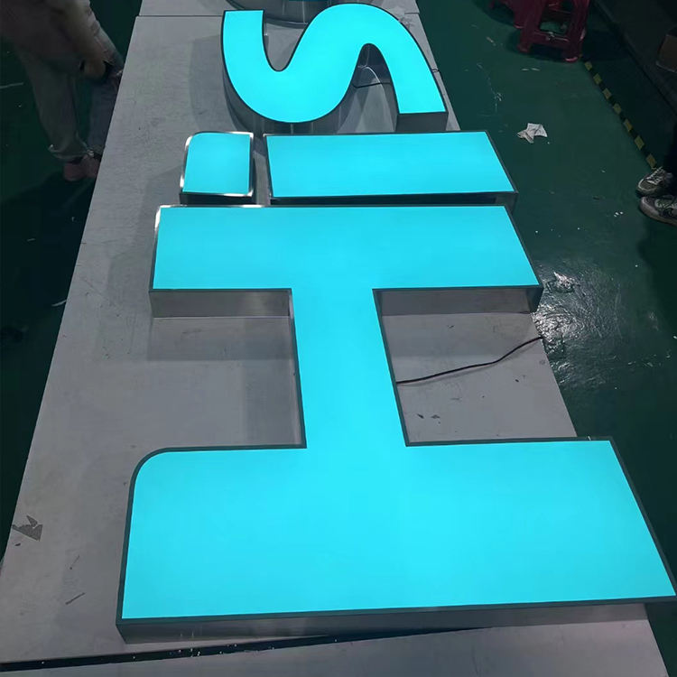 Letras Iluminadas LED de 12V con Borde de Acero Inoxidable, Caja de Luz Plana, Personalización de Logotipos para Tiendas en Exteriores