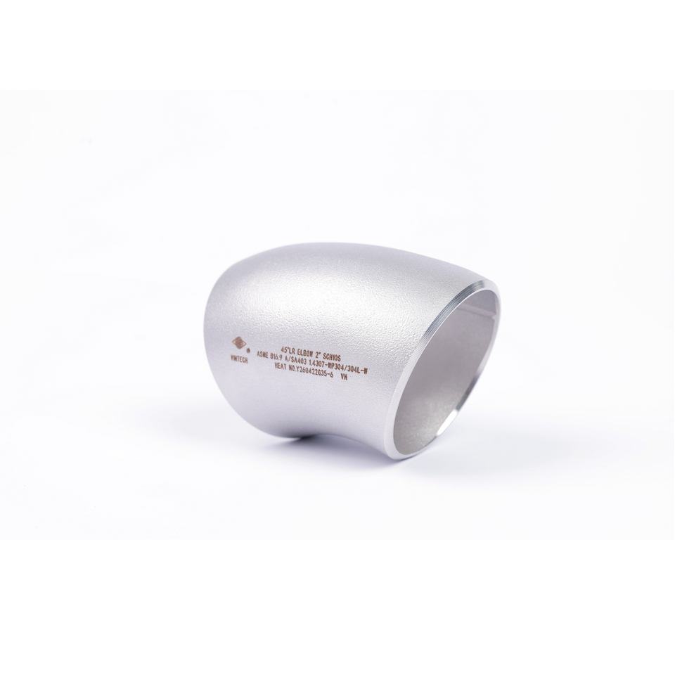Codo de acero inoxidable con forma de curva Codo de radio largo 45 grados ASME B16.9 A/SA403 Código de cabeza redonda estándar Soldado sin costuras
