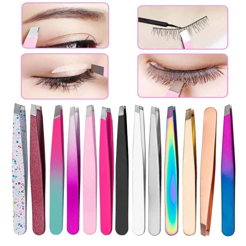 Pinzas para cejas de acero inoxidable con punta puntiaguda Punta inclinada Removedor de espinillas Herramienta de depilación de belleza para depilación de cejas