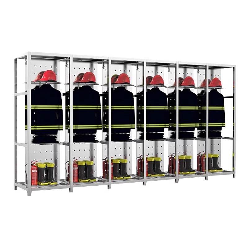 Estante de Acero Inoxidable para Ropa de Bombero de 2 Niveles, Almacenamiento Rápido de Trajes de Bombero, Uso en Oficina