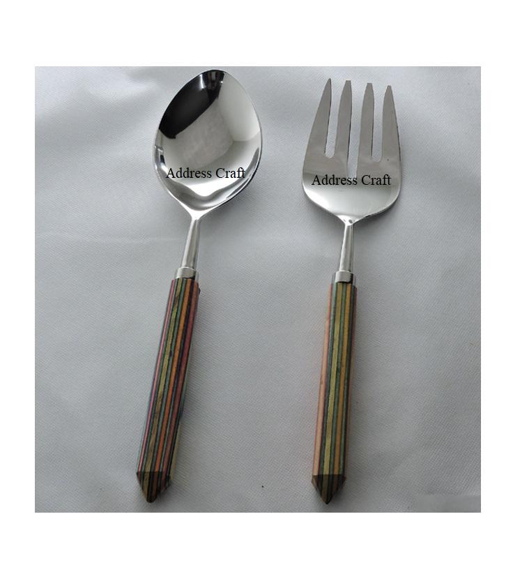 Cubiertos de acero inoxidable, juego de cucharas para servir ensaladas con mango de madera de lujo, cubiertos sostenibles para bodas y restaurantes, utensilios