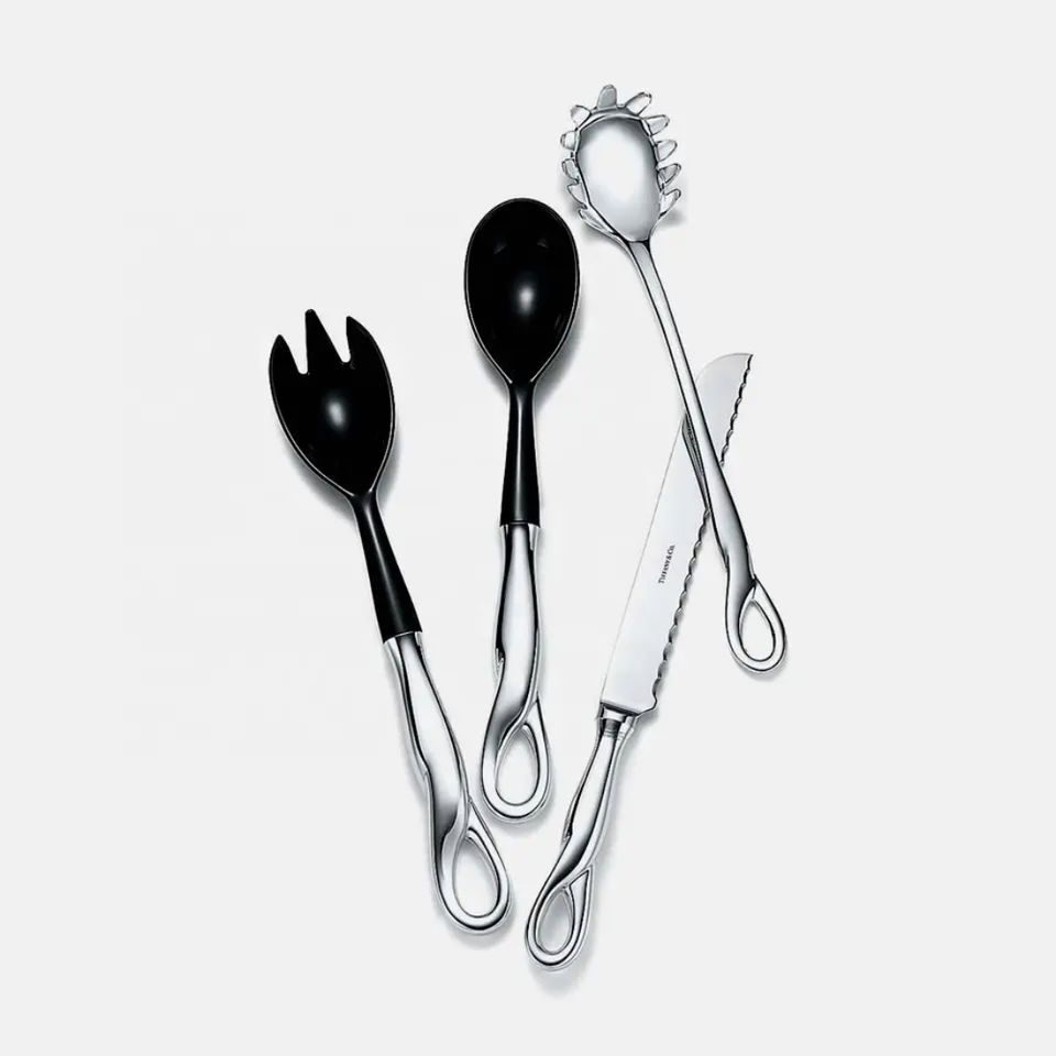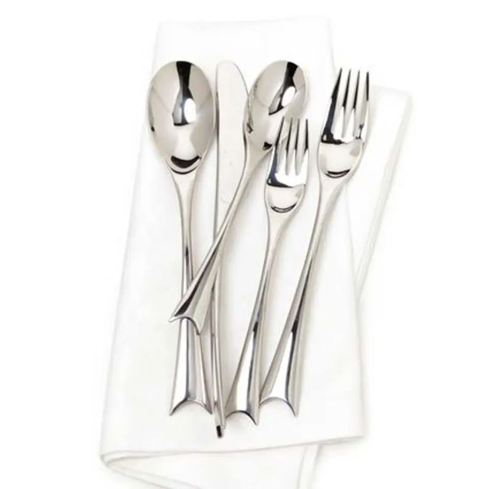 Juego de cubiertos de acero inoxidable con mango de mármol y diseño elegante, perfecto para bodas en restaurantes y eventos especiales