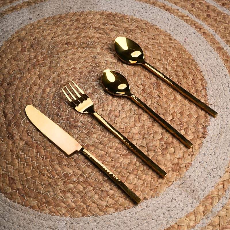 Cubiertos de acero inoxidable usados en utensilios de cocina Tabletop Cafe Home Nuevo diseño Mango Chapado en color dorado Juego de 4 juegos de cubiertos