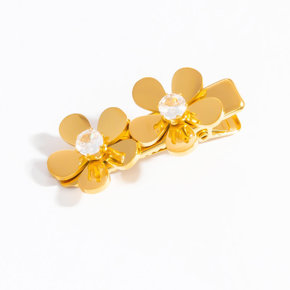 Pinzas para el Cabello de Acero Inoxidable con Perlas y Flores, Pinza para la Nariz con Punta Dorada, Accesorio Diario para Mujer FS71015