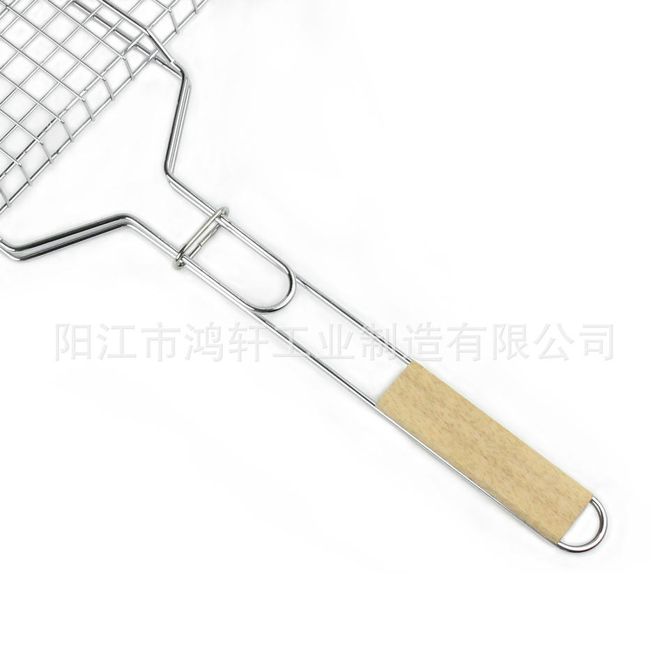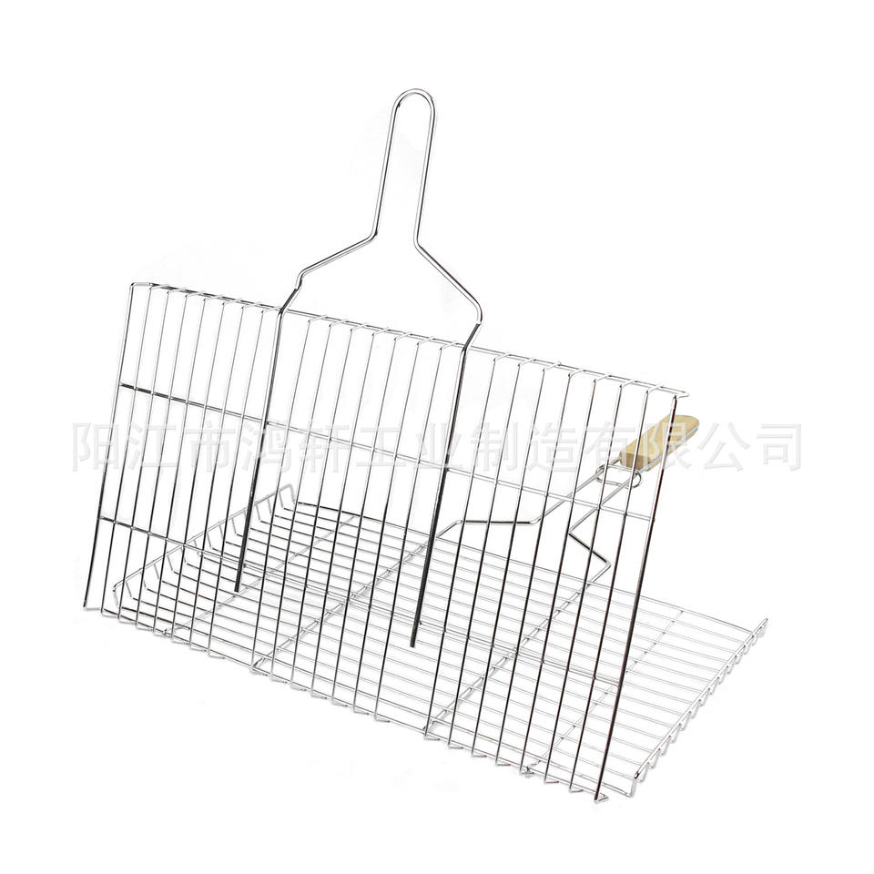 Parrilla plegable de acero inoxidable con mango de madera, 63,5x36x2,5 cm, para cocinar al aire libre, hornear, barbacoa