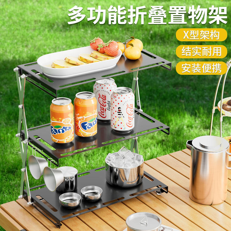 Estante de Almacenamiento Plegable de Acero Inoxidable, 3 Niveles, Rectangular, Portátil, para Camping y Uso en Exteriores, Tipo Vertical, Organizador