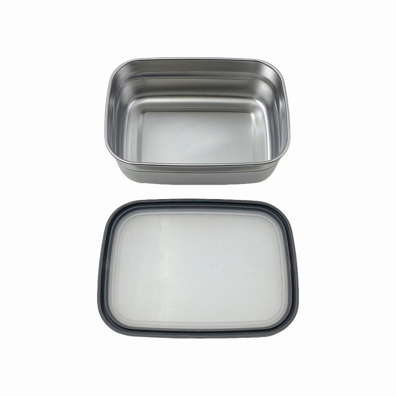 Recipiente de comida cuadrado de acero inoxidable de 600 ml, tipo bento, con tapa de clip, apto para lavavajillas y microondas, para preparar comidas, para acampar al aire libre y para la cocina.